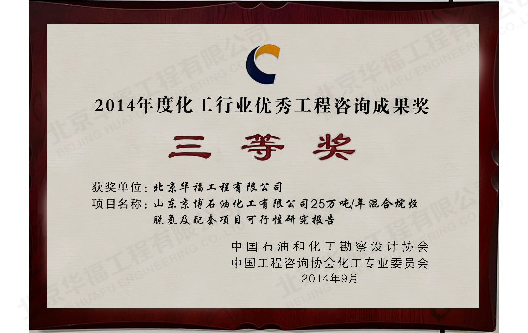 佳龍石化項目優秀工程咨詢成果三等獎
