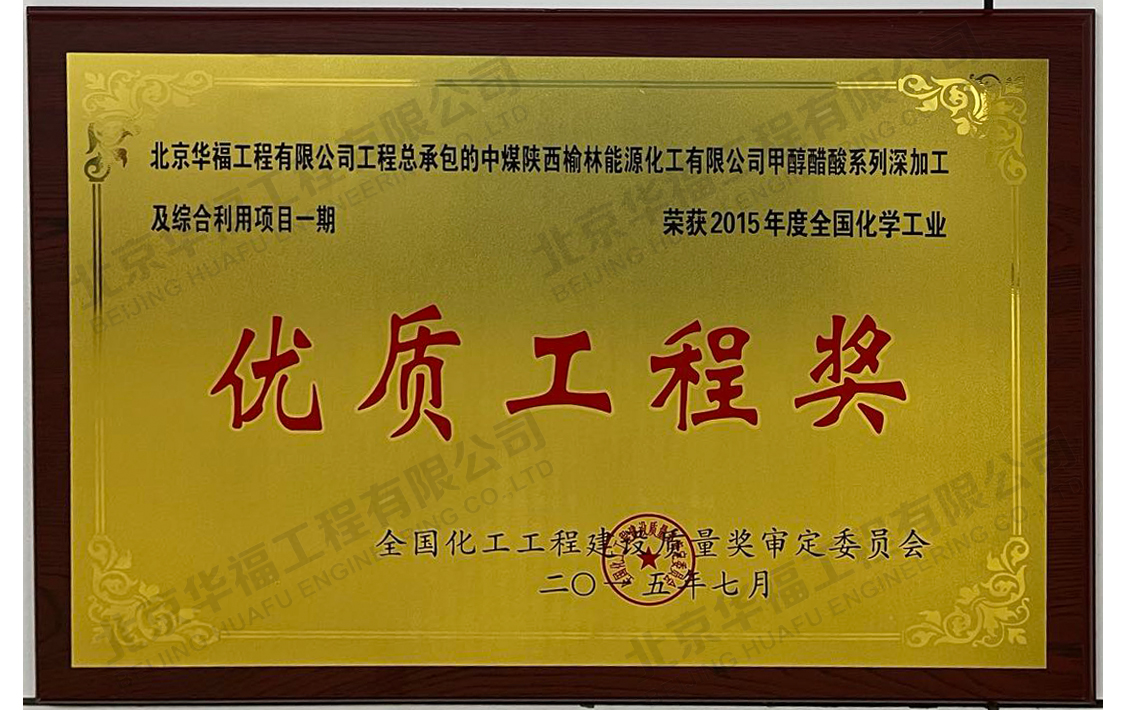 中煤榆林甲醇醋酸深加工項目優質工程獎