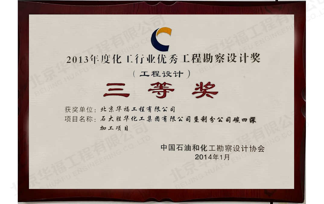 石大勝華項目優秀勘察設計三等獎